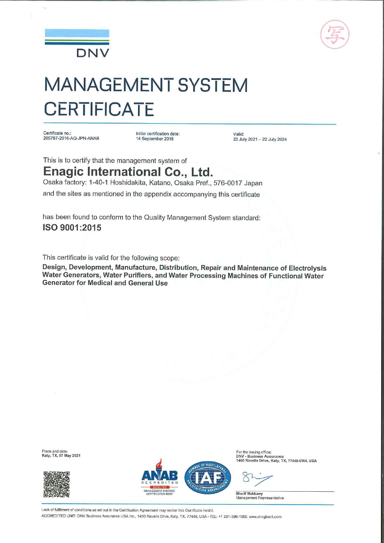Trust in the safety, reliability, and performance of Kangen Water machines, certified by leading international organizations