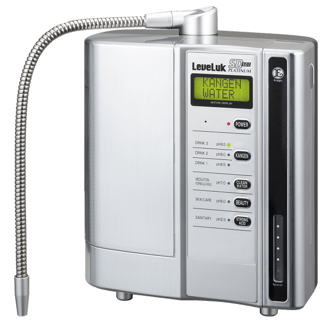 A sleek, modern version of the SD501, the Platinum model maintains the original's high performance with a refined aesthetic. It produces all five types of water and features a built-in electrolysis chamber, large LCD panel, and clear voice prompts.